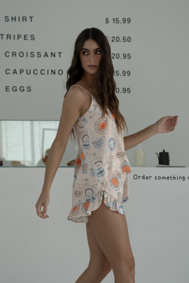 Lujo y comodidad en un solo producto. Elaborado en satín de alta calidad con un hermoso estampado, cintura con elástico que garantiza un ajuste cómodo, blusa con tirantes ajustables se adaptan perfectamente a tu figura. Realza tus noches con estilo y comodidad.