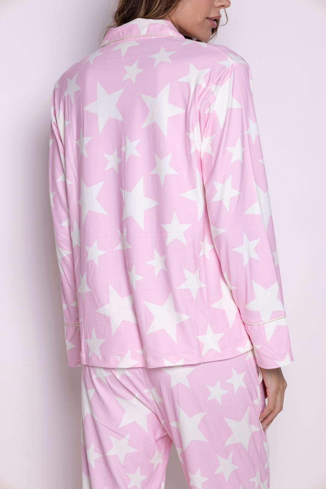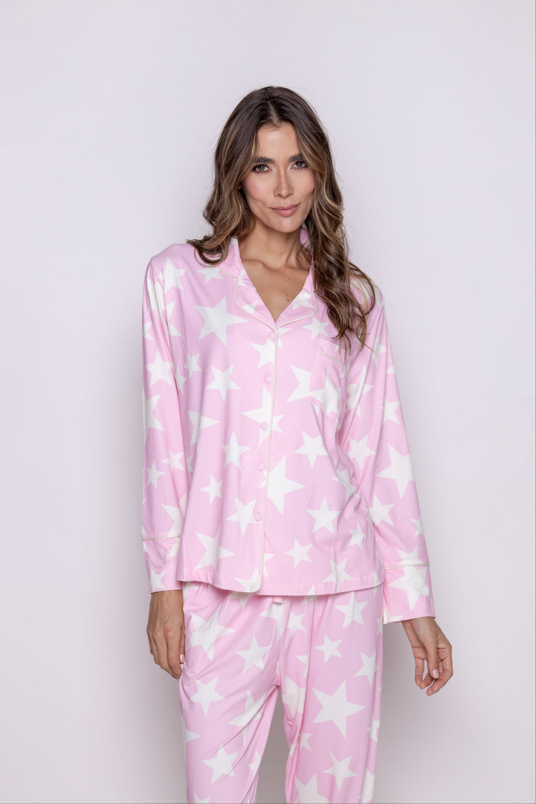 Duerme con estilo, Combina la ternura del rosa pastel con la magia de un estampado de estrellas en blanco que ilumina cada momento de descanso.