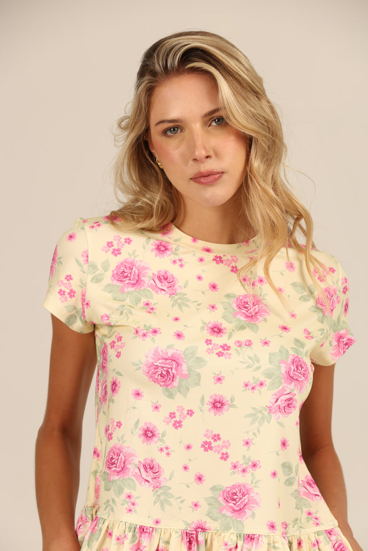 Su estampado floral delicado y su tono mantequilla evocan los días soleados que nunca quieres olvidar, su silueta suave y fluida te envuelve en una comodidad irresistible. Bye Bye Summer